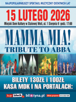 15.02.2026 Spektakl muzyczny "Mamma Mia tribute to Abba"Miejski Dom Kultury w Stalowej Woli |
